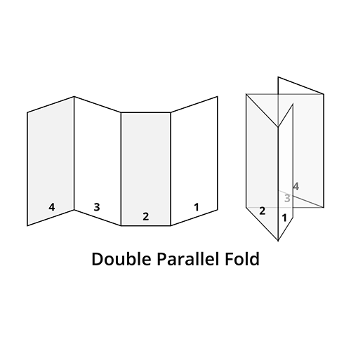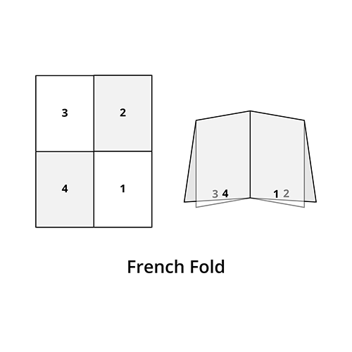 The French fold or Right Angle Fold is folded in half horizontally and then vertically folded in half folded to a letter size.