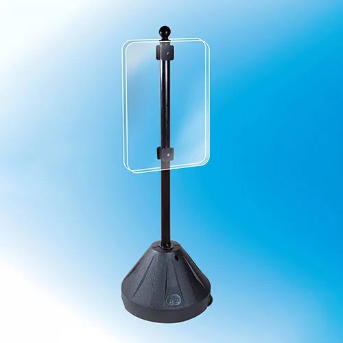 The Tip N Roll Portable Pole Sign is a 48" tall mobile exterior sidewalk stand. Fill the 18" base with water or sand for resistance against windy conditions. Built-in wheels make relocation simple and easy. Stability plates help mount signs on the pole in a secure position. This display can be used as a 1 or 2-sided display. The sign is printed on 3mm white PVC and can be cut as a square, circle or any other shape. The sign dimensions can be up to 24" x 24".